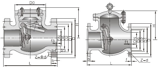 旋啟式止回閥又稱單向閥或逆止閥,其作用是防止管路中的介質(zhì)倒流。啟閉件靠介質(zhì)流動和力量自行開啟或關(guān)閉,以防止介質(zhì)倒流的閥門叫止回閥。止回閥屬于自動閥類,主要用于介質(zhì)單向流動的管道上,只允許介質(zhì)向一個方向流動,以防止發(fā)生事故。本類閥門在管道中一般應(yīng)當(dāng)水平安裝。